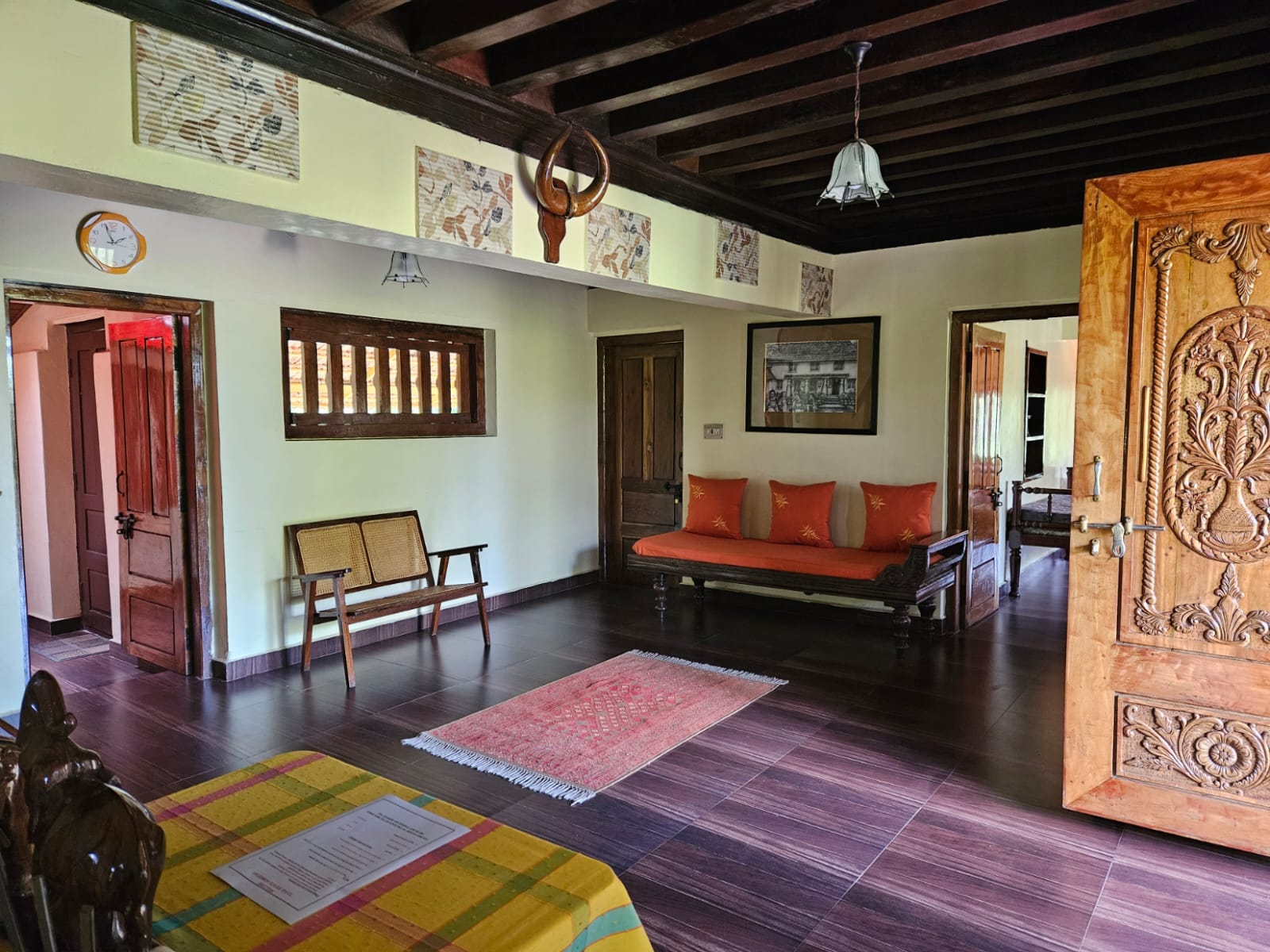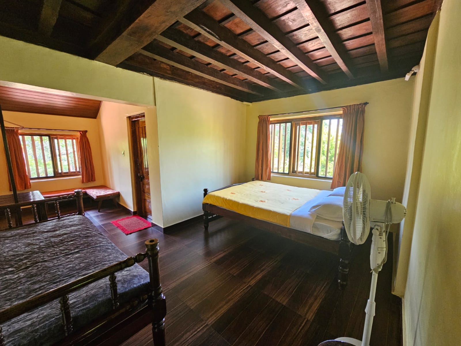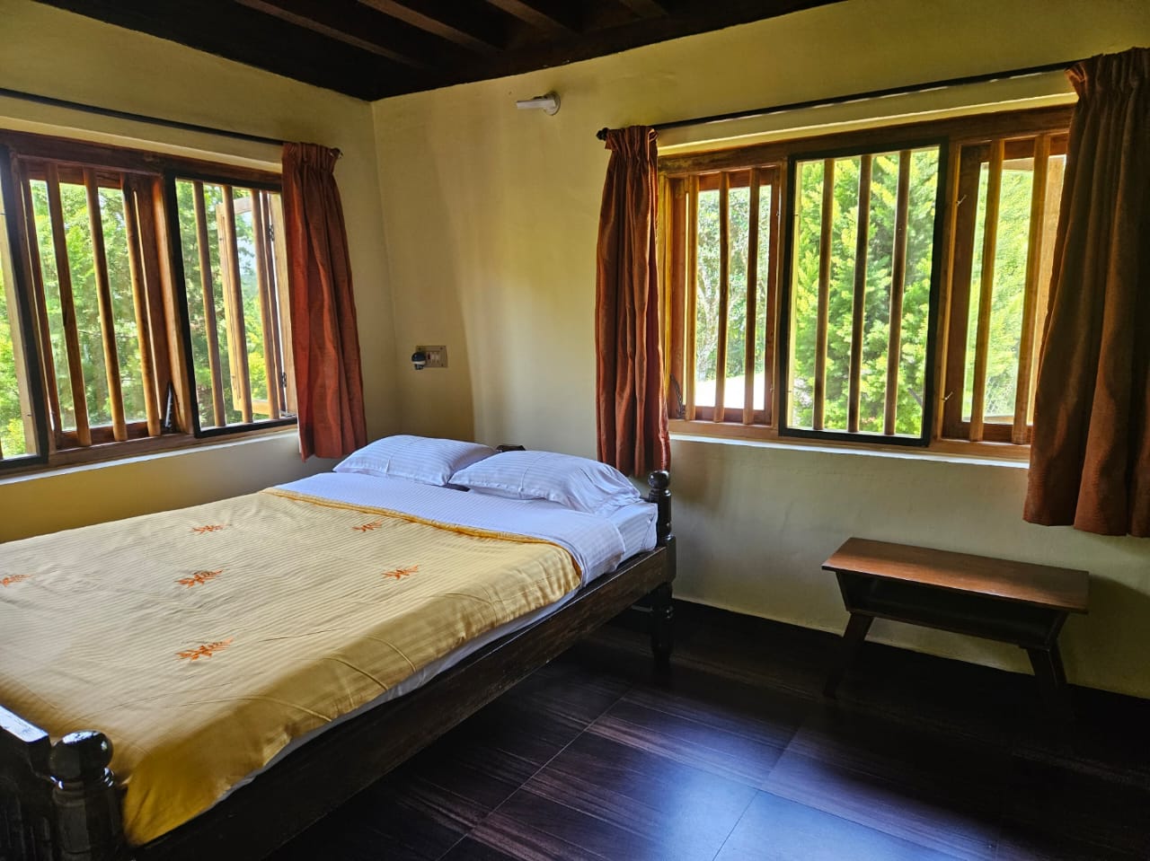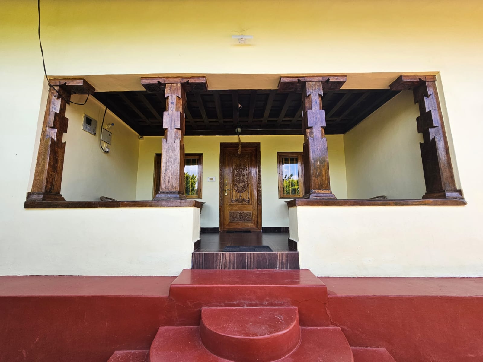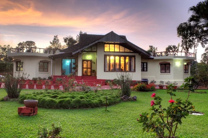 At the Estaate stay, you will wake up every morning to a panoramic view of mist rolling down the coffee plantation, dew drops glistening in the fresh morning sunshine and all pervading sense of peace. You have an option of staying in the 175 year old ancestral 3 bedroom house (3 BHK).It is located 6 kms from Madikeri (mercara) on the Madikeri Sidapur highway SH88